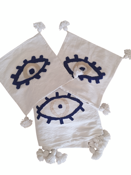 NEW - Ensemble Plaid brodé berbère + 2 housses de coussin – Modèle coloré -60%