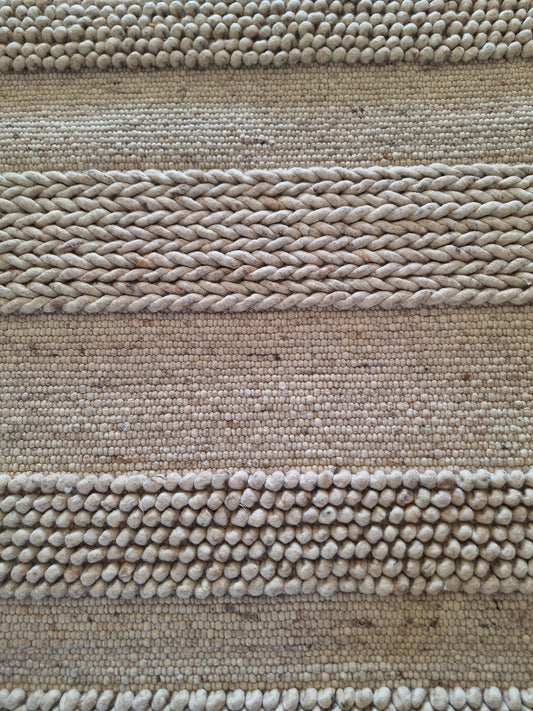 Tapis Boules / Tressé en laine écru 2m40 x 1m70