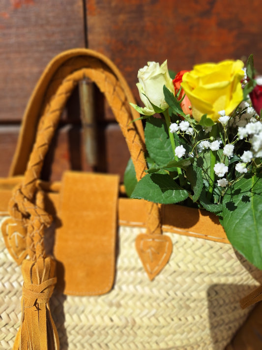 Panier Casablanca - Avec ses sublimes franges et anse en daim moutarde -20%