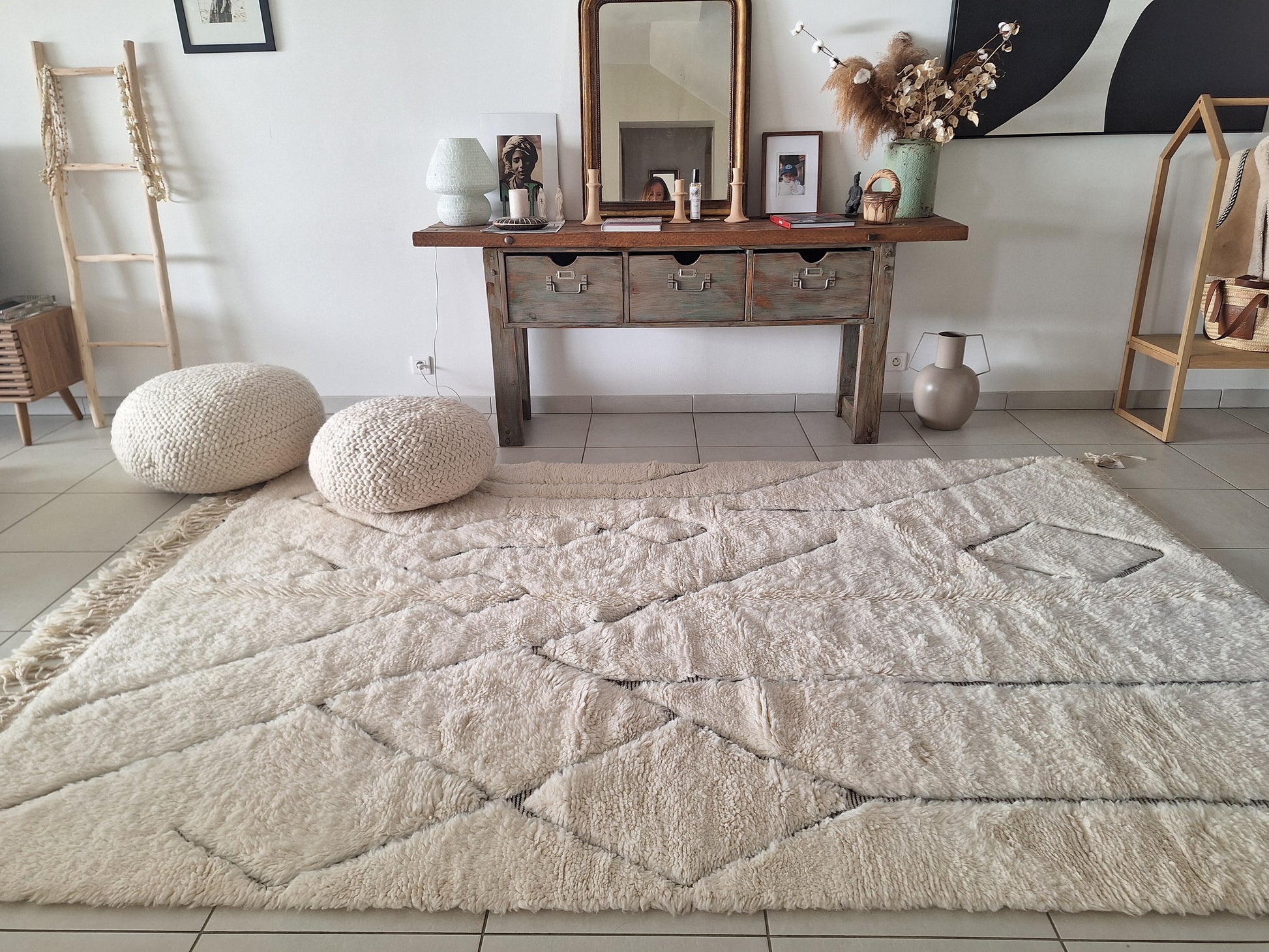 Le tapis berbère écru s’intègre parfaitement dans tous les univers :