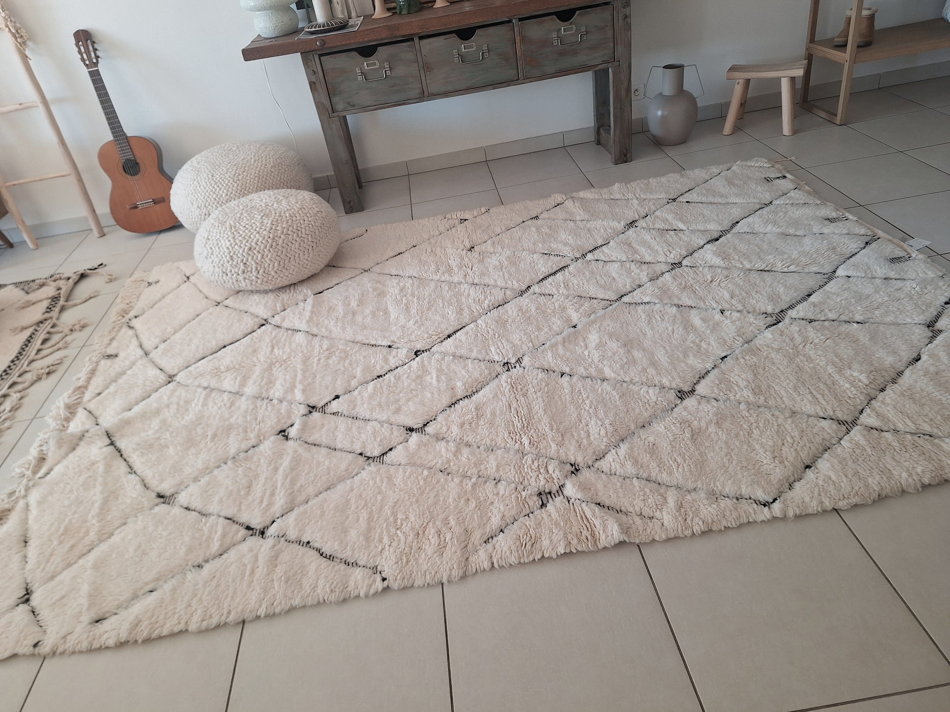 Le tapis berbère écru s’intègre parfaitement dans tous les univers :