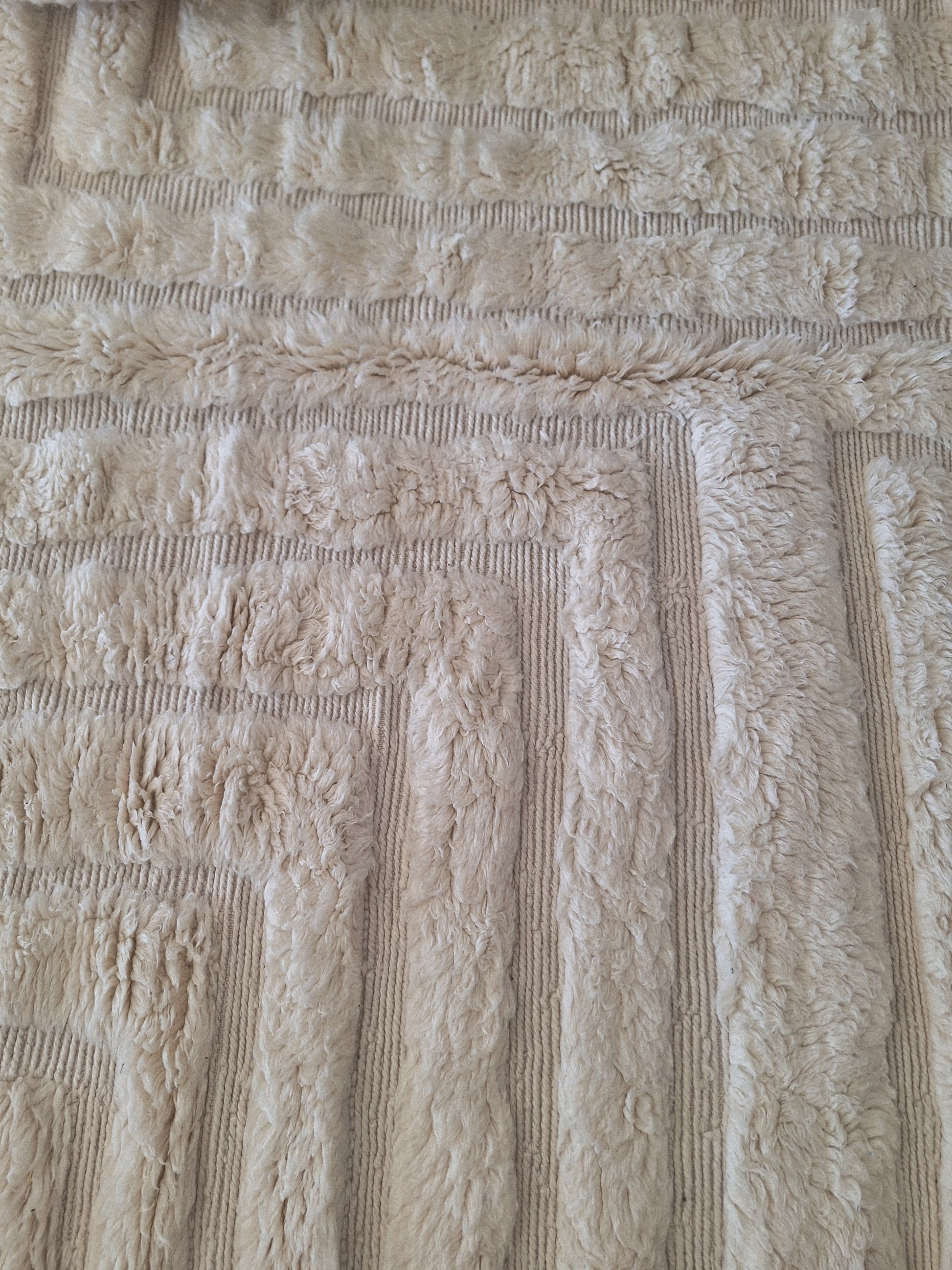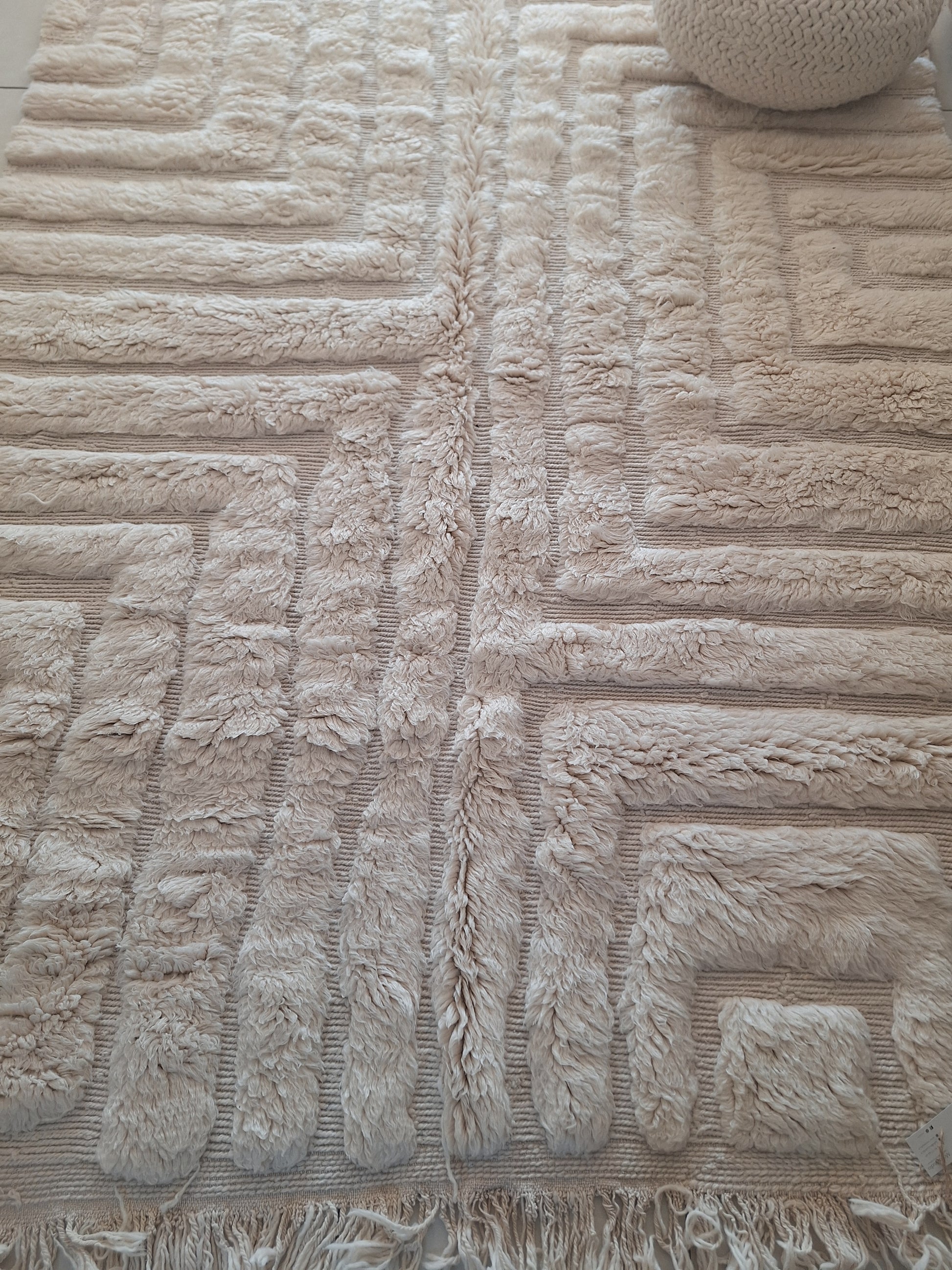 Épais, moelleux et naturellement isolants, les tapis en laine Beni Ouarain apportent chaleur, confort et élégance à votre espace. Leur texture dense et naturelle vous donne la sensation de marcher sur un nuage.