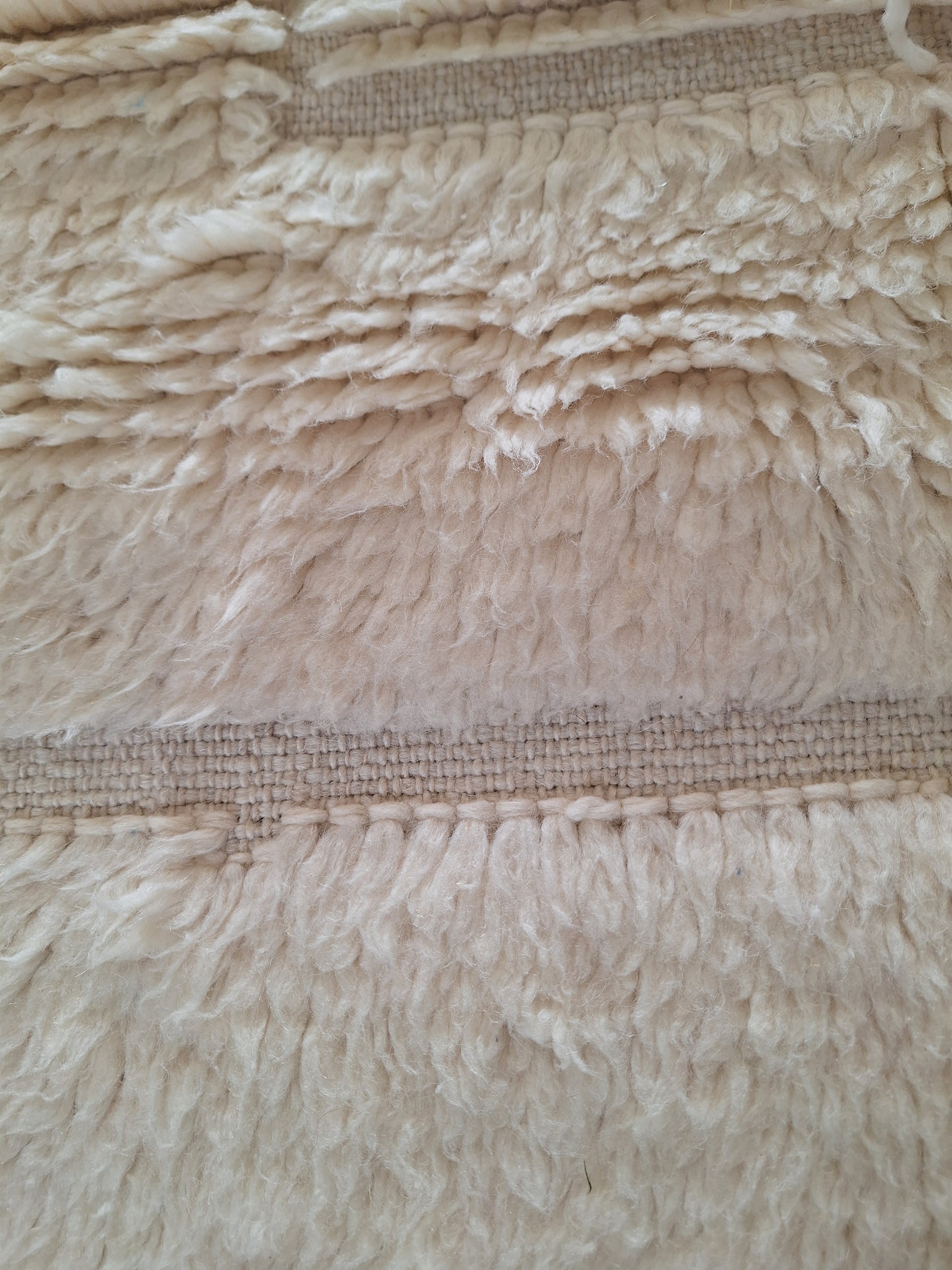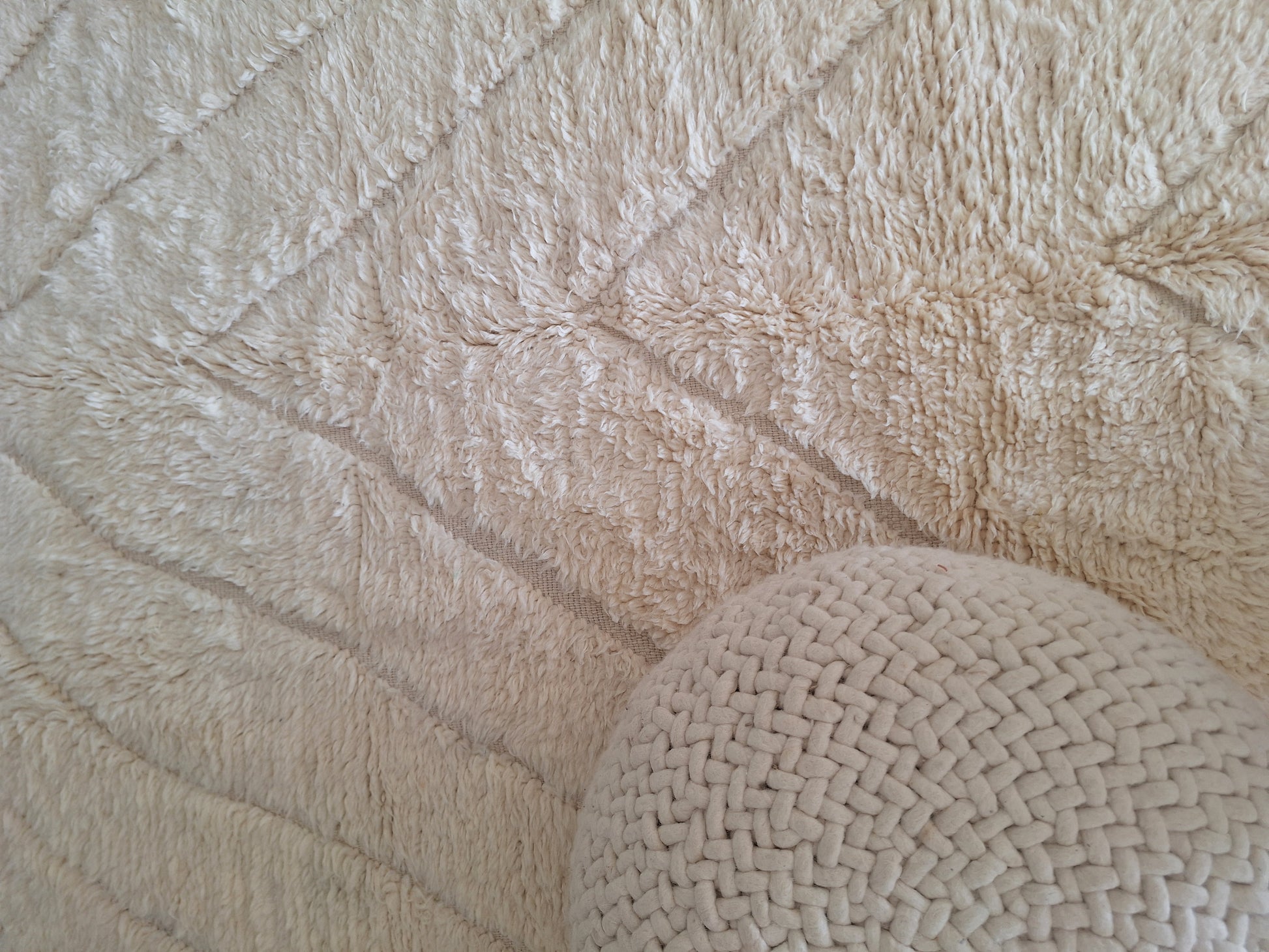 Contrairement aux tapis fabriqués avec des mélanges coton/laine, nos tapis Marmoucha sont entièrement réalisés en laine pure, provenant de la région de Marmoucha, réputée pour la qualité incomparable de sa fibre.