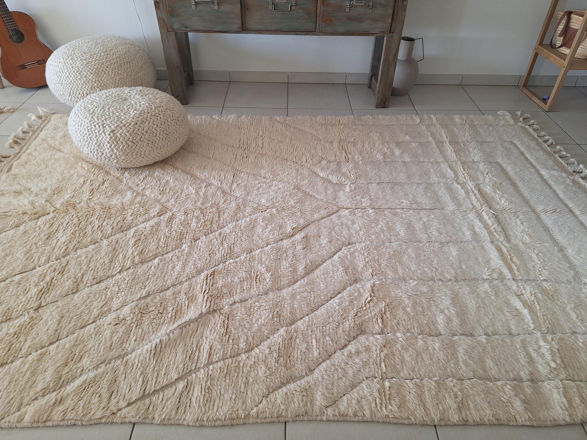 Plongez dans l’univers du tapis Marmoucha, un chef-d’œuvre d’artisanat marocain tissé à la main par les femmes berbères du Moyen Atlas. Réputé pour sa laine exceptionnellement douce et pure, ce tapis incarne le mariage parfait entre tradition et élégance contemporaine.
